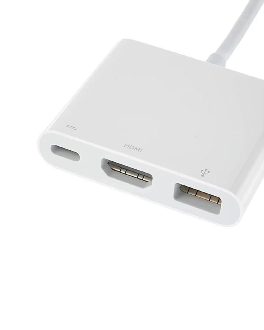 Mit dem USB-C Digital AV Multiport Adapter kannst du deinen Mac oder dein iPad Pro mit USB-C Anschluss an ein HDMI-Display und gleichzeitig auch ein gängiges USB-Gerät und ein USB-C-Ladekabel anschliessen.