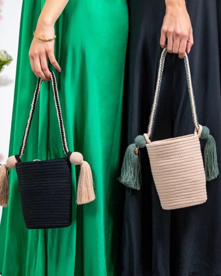 Die Tasche Coco ist dazu da, Ihnen einen einzigartigen und eleganten Stil zu verleihen, ohne dabei die Funktionalität zu vernachlässigen. Sie kann die unterschiedlichsten Gegenstände aufnehmen und an der Hand oder am Arm getragen werden. Der zweifarbige Trageriemen verleiht Ihren täglichen Outfits mit seinen Quasten und dem „case&me“-Anhänger einen Touch von Eleganz. Die Eimerform und die Stofftasche innen lassen sie für eine Vielzahl von Anlässen geeignet erscheinen: Sie lässt sich in der Stadt tragen, aber im Sommer auch am Strand.