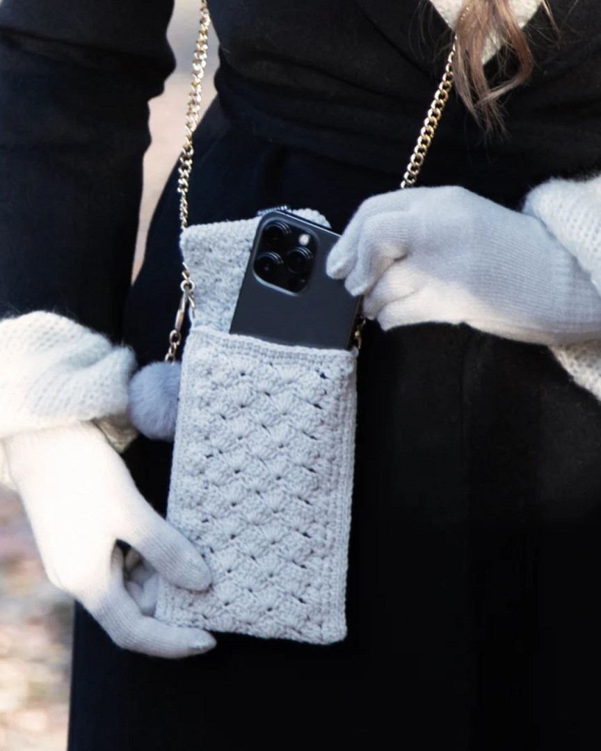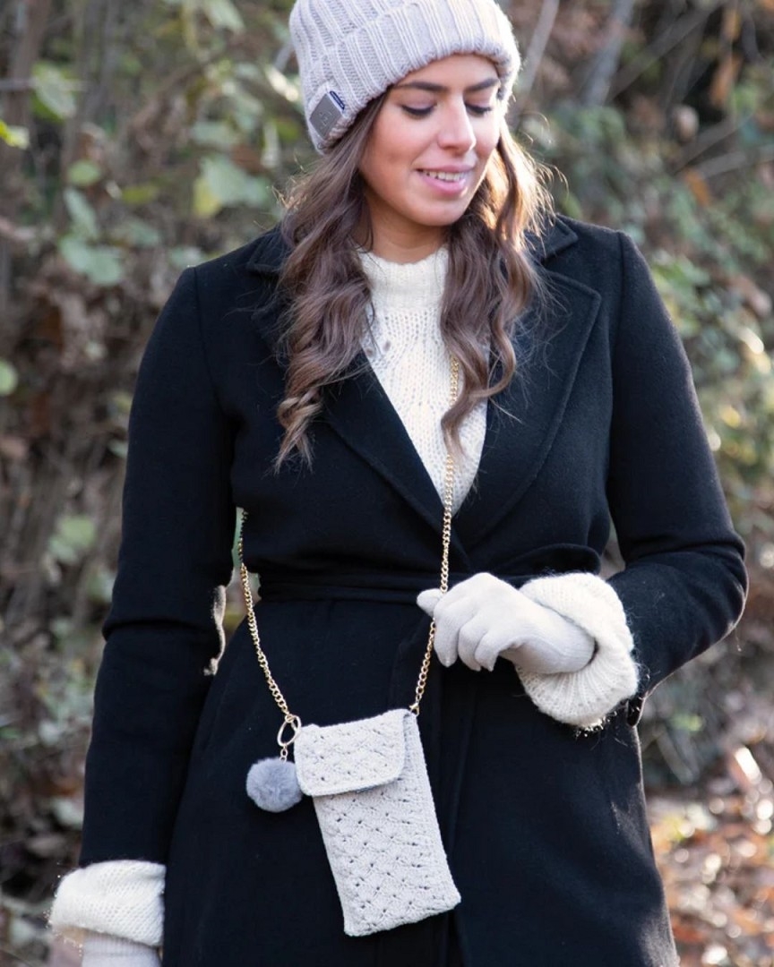 Diese weiche Winterhandtasche wurde entwickelt, um ein Smartphone bis zu 6,8" immer bequem bei sich zu tragen. Der praktische Schultergurt von 120 Zentimetern ermöglicht einen einfachen und sicheren Transport. Legen Sie es hinein und schließen Sie die Klappe: So ist es vor den kalten Wintertagen sowie vor Stößen und Kratzern geschützt.