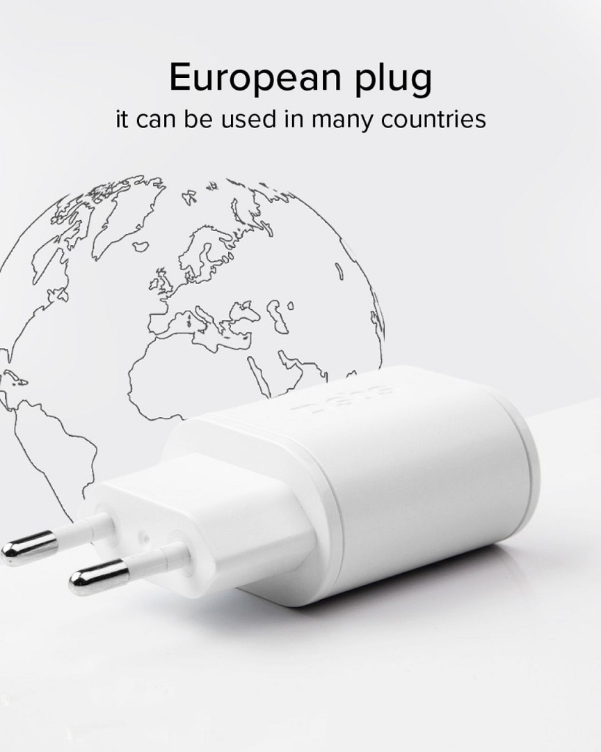 Laden Sie zwei Geräte gleichzeitig über leistungsstarke, schnelle USB-Anschlüsse USB-C Power Delivery-Anschluss für ultraschnelles Laden in nur 45 Minuten Adaptiver Schnelllade-USB-Anschluss für vollständiges Aufladen in nur 50 Minuten Kompakte Größe, ideal zum Reisen und zum Aufladen von Geräten 20-Watt-Wandladegerät mit europäischem Stecker für maximalen Komfort auf Reisen