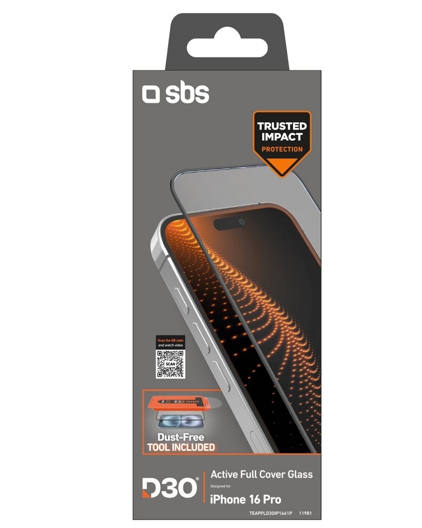SBS D3O Schutzglas iPhone 16 Pro (schwarz)