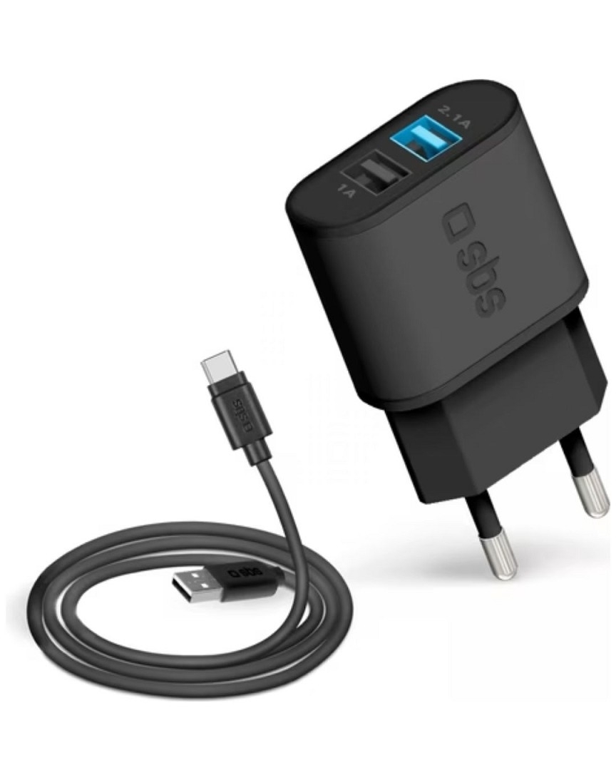 SBS USB-Reiseladeset mit Type-C-Kabel (schwarz)