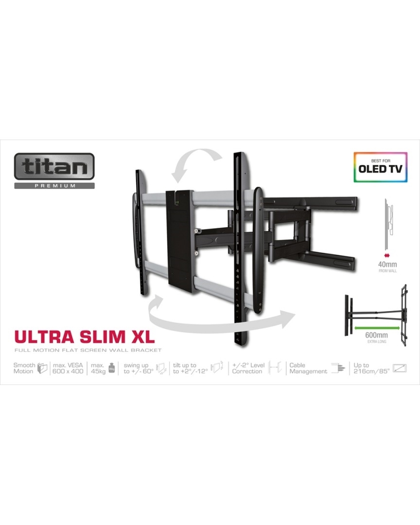 TITAN 85" Neigbare TV-Wandhalterung, VESA 100–640, 45 kg (schwarz)