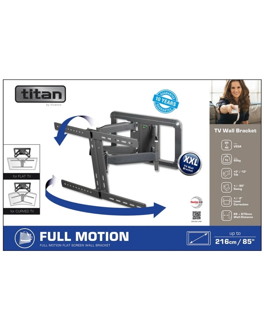 TITAN TV-Wandhalterung, Schwenkbar, 85", 60kg