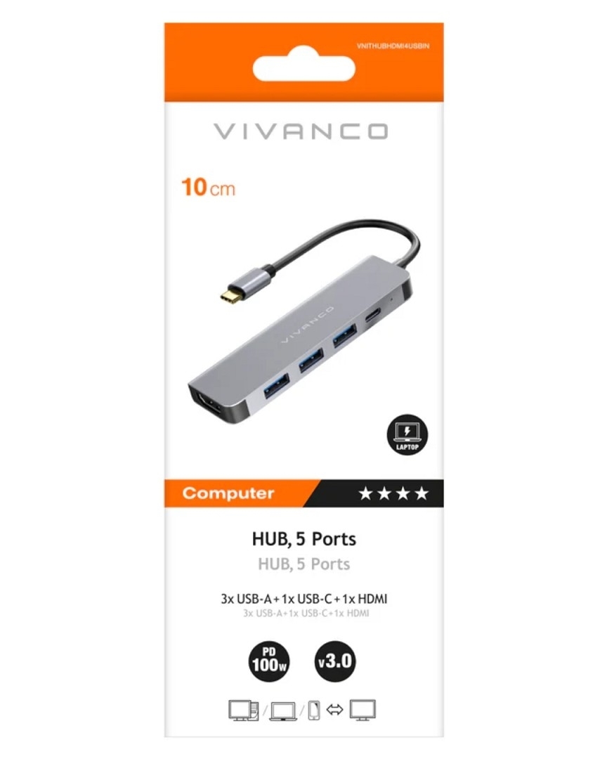 Vivanco 3-in-1 USB-C Hub mit USB-A (silber)