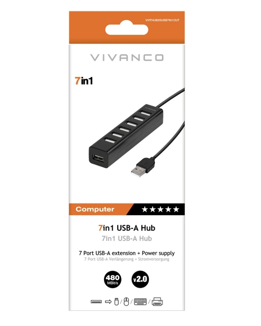 Vivanco 7-Port USB 2.0 Adapter (schwarz)