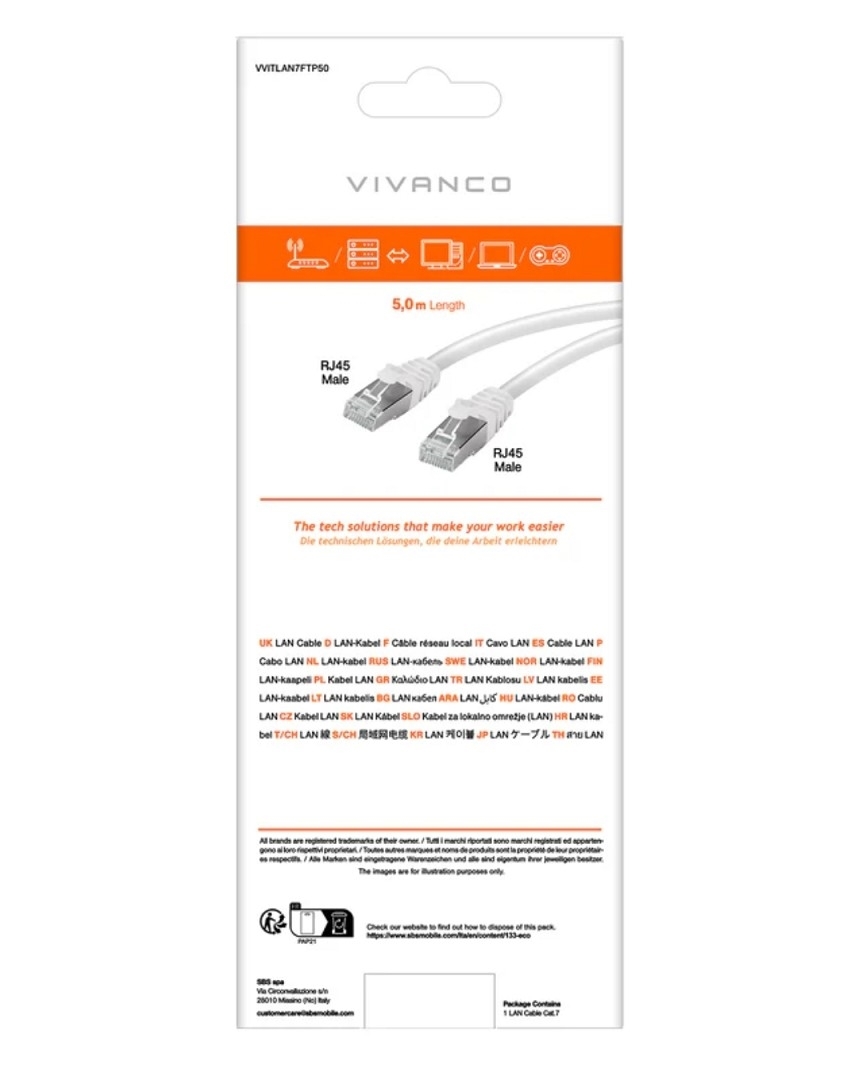 Vivanco S/FTP CAT 7 Netzwerkkabel (weiss)