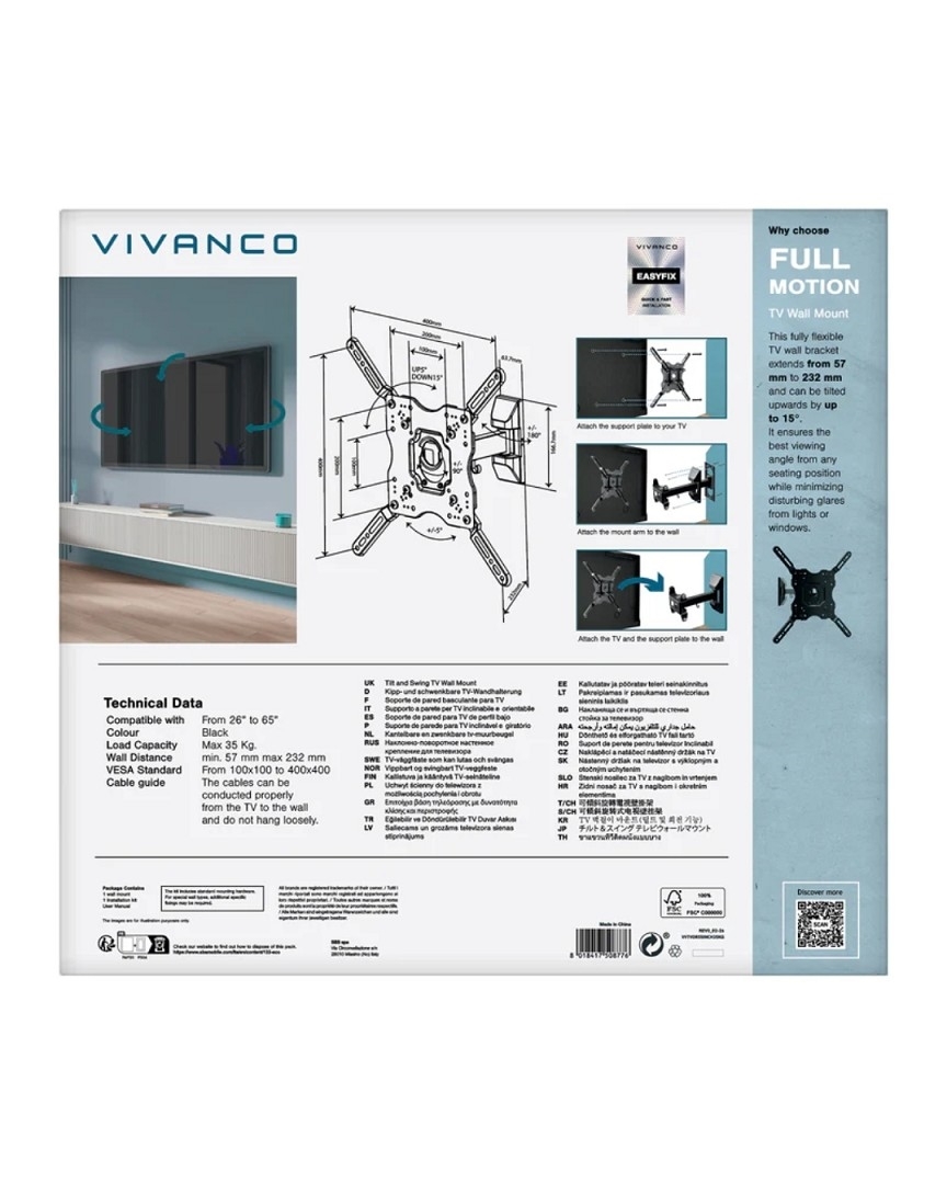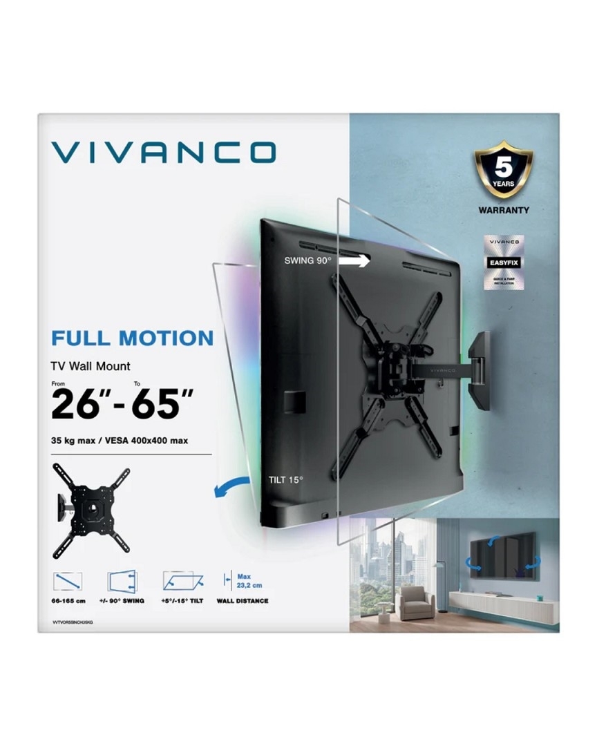 Vivanco TV-Wandhalterung, Schwenkbar, 55", 35kg, VESA 400x (schwarz)