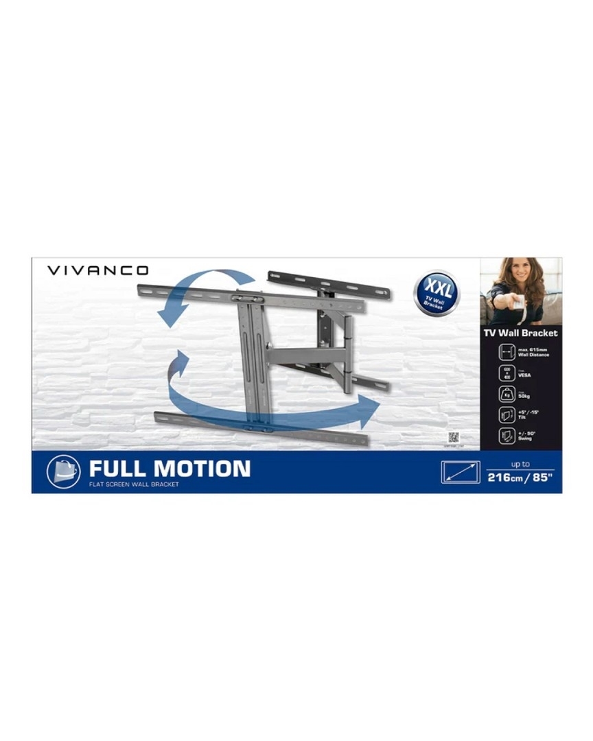 Vollständig verstellbare TV-Wandhalterung für extragroße Bildschirme bis zu 216 cm (85 Zoll) Diagonale. Bietet maximale Flexibilität dank der doppelten Struktur mit 3 Drehpunkten.