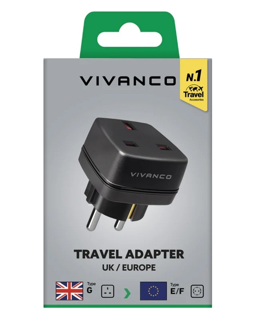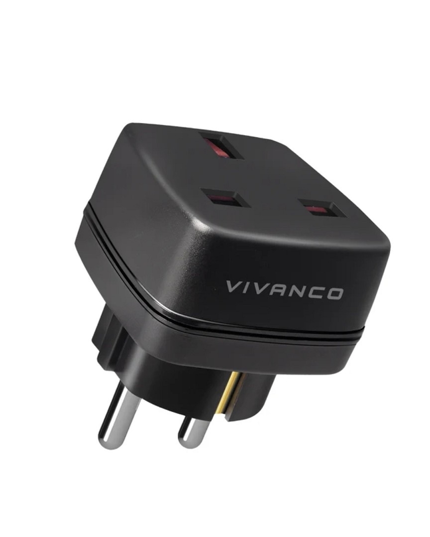 Vivanco UK-auf-Schuko-Reisestecker (schwarz)