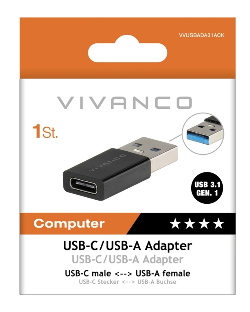 Vivanco USB-A to USB-C 3.1 Adapter, M-F, (schwarz)