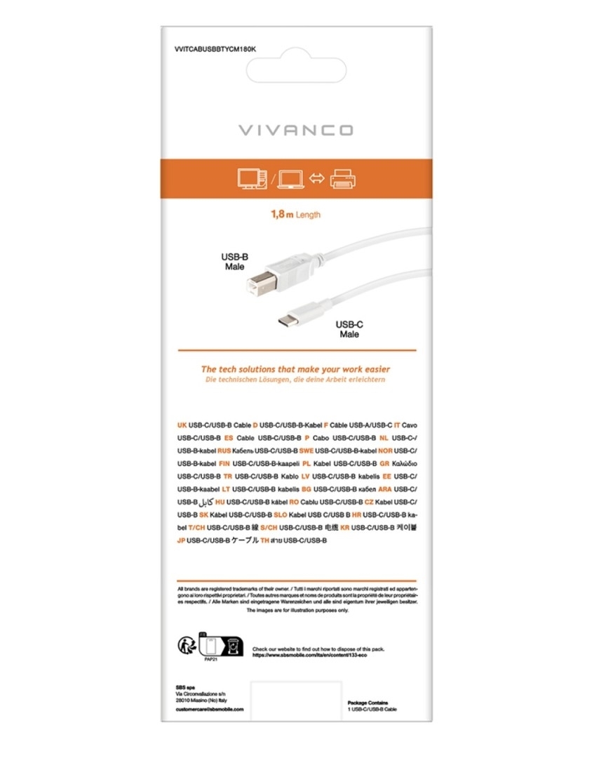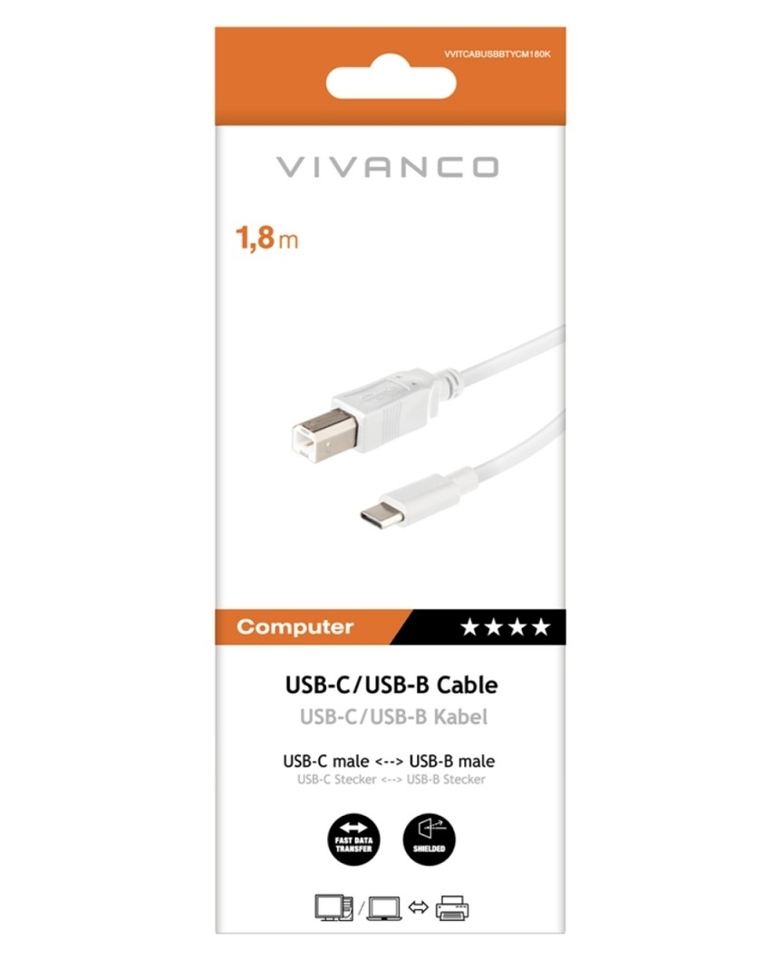 Vivanco USB-C/USB-B Kabel, M-M, 1,8m weiß (weiss)
