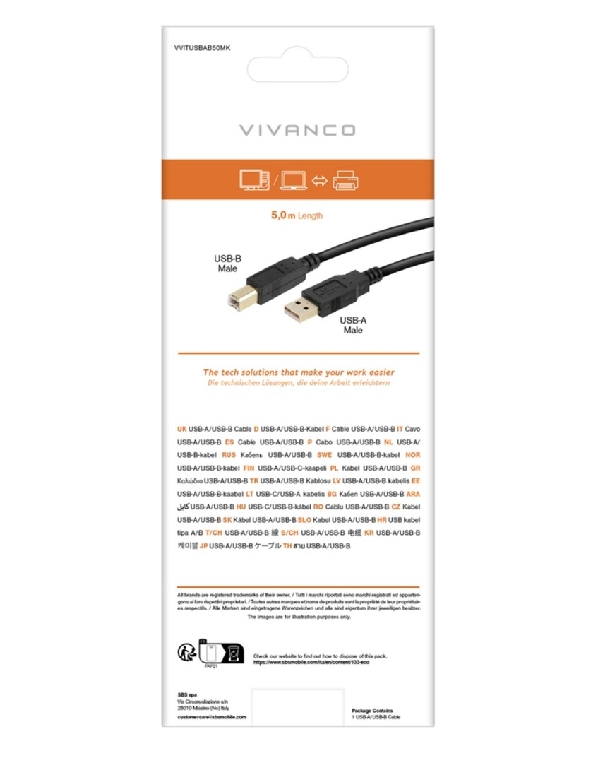 Vivanco USB-Kabel für PC Typ A auf Typ B (schwarz)