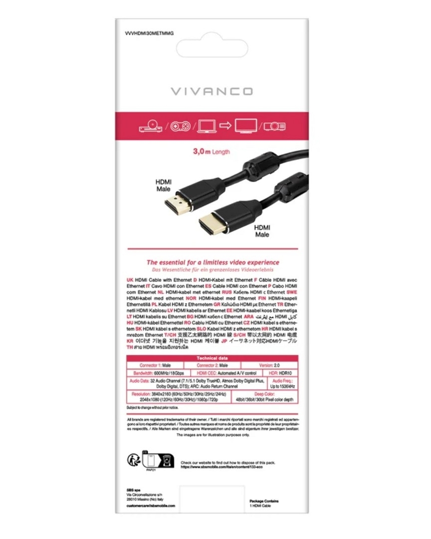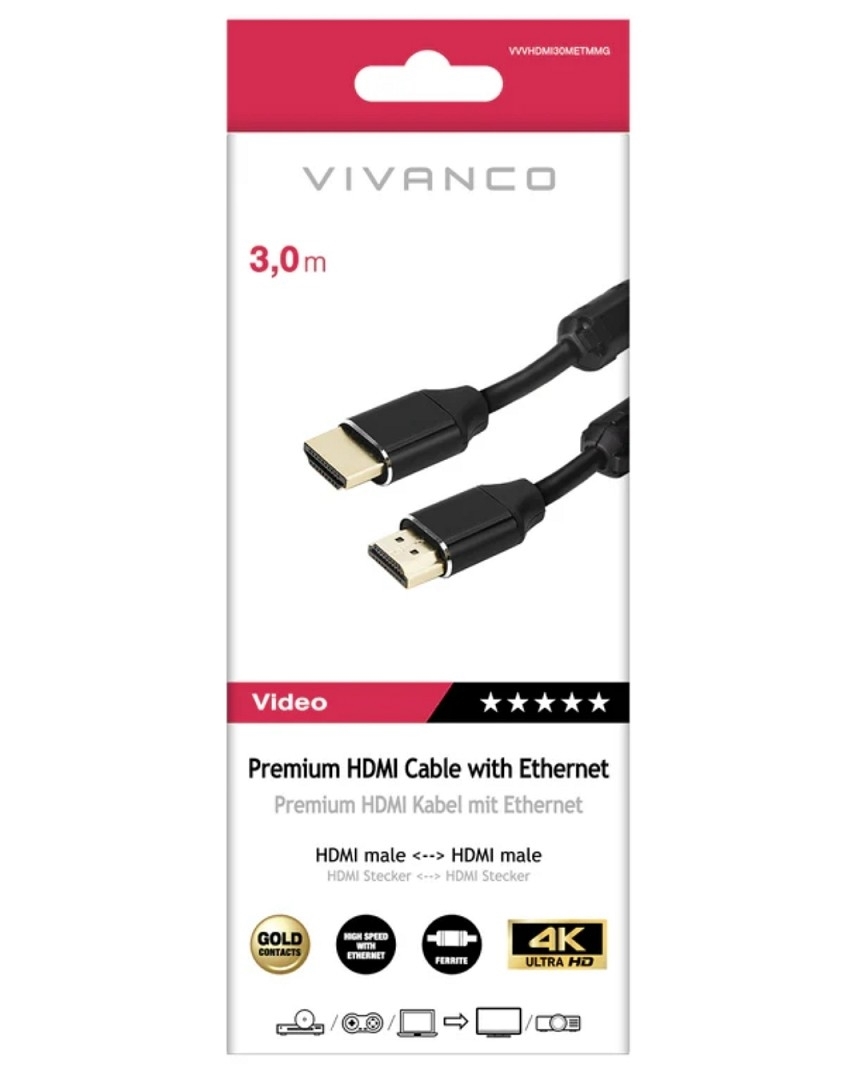Vivanco Vergoldetes HDMI 2.0-Kabel- (schwarz)
